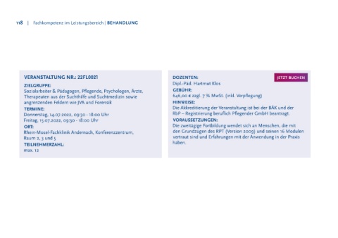 118 | Fachkompetenz im Leistungsbereich | BEHANDLUNG JETZT BUCHEN