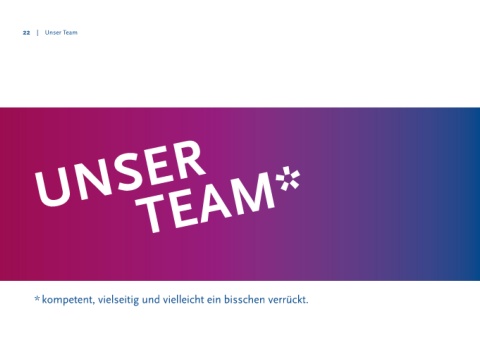 UNSER TEAM 22 | Unser Team UNSER TEAM* * kompetent, vielseitig und vielleicht ein bisschen verrückt.